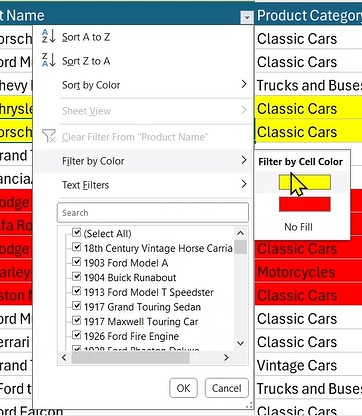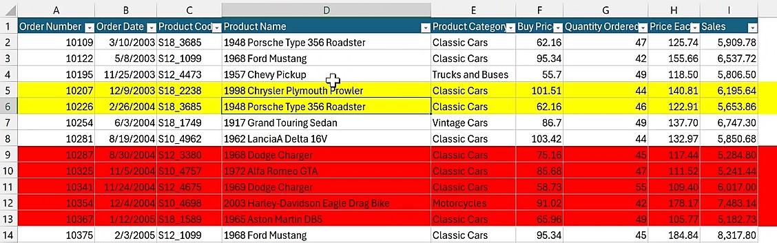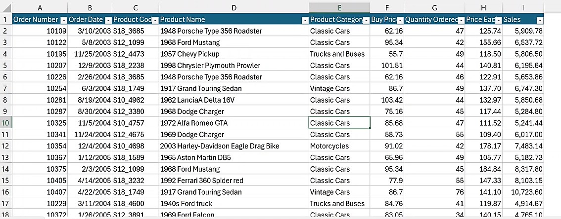 Maka, kolom Product Category akan menampilkan kategori classic cars saja.