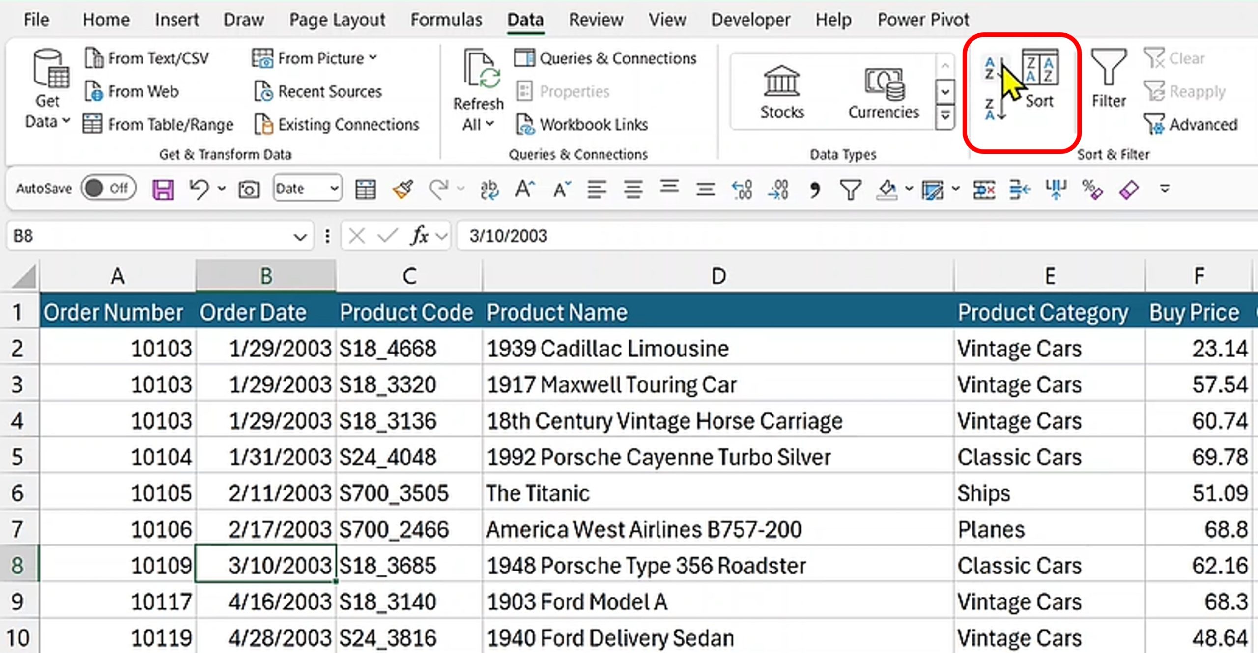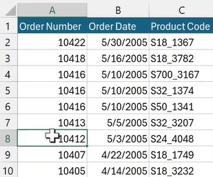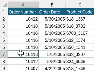 Misalnya Anda ingin mengurutkan data berdasarkan kolom Order Number berdasarkan contoh tabel training excel berikut.