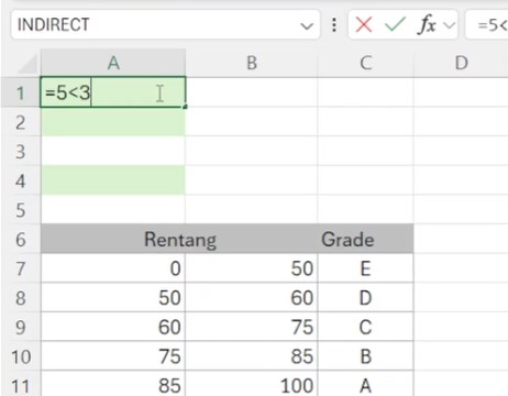 maka hasilnya adalah FALSE (karena 5 lebih besar dari 3).
