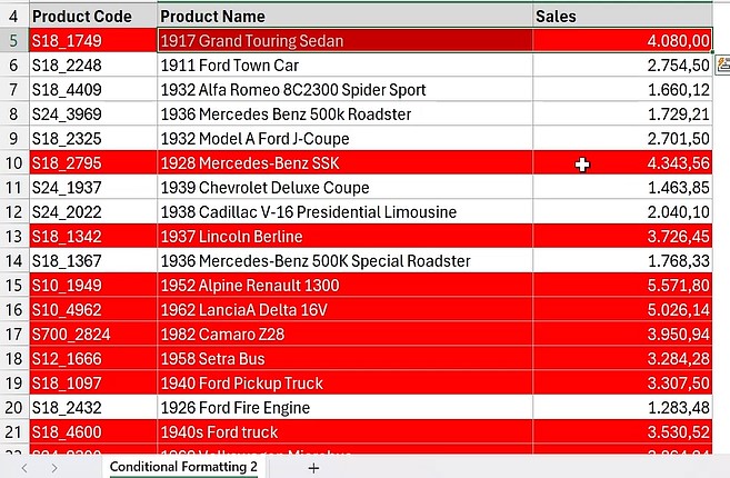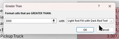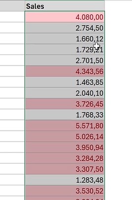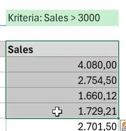 - Maka bisa kita lihat hasil penjualan yang nilainya lebih dari 3000 ditandai dengan warna merah.