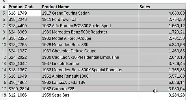 - Pada file latihan, kita lihat tabel contoh terdiri dari 3 kolom, yaitu product code, product name, dan sales.