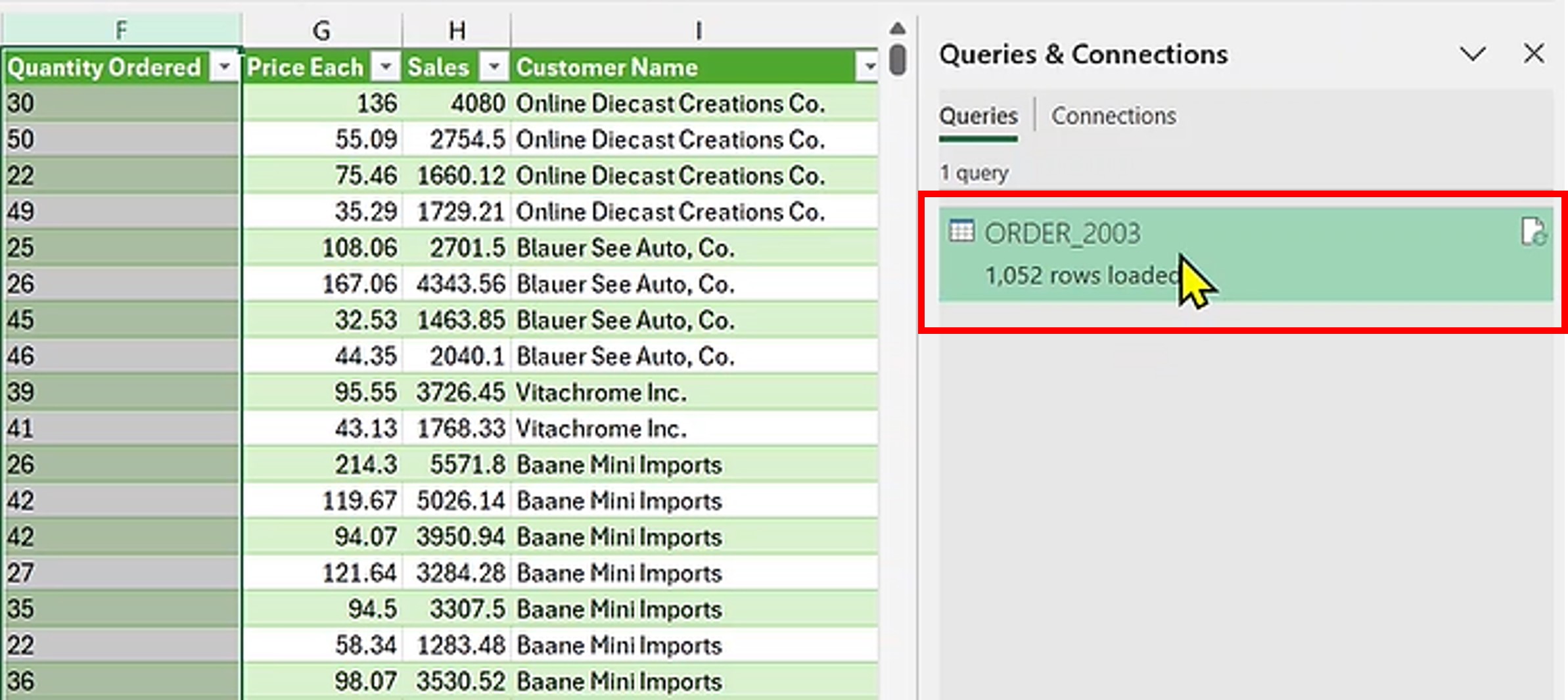 - Lalu kita akan diarahkan ke tampilan table sebelumnya dan dapat kita lihat bahwa format Quantity Ordered telah sesuai.