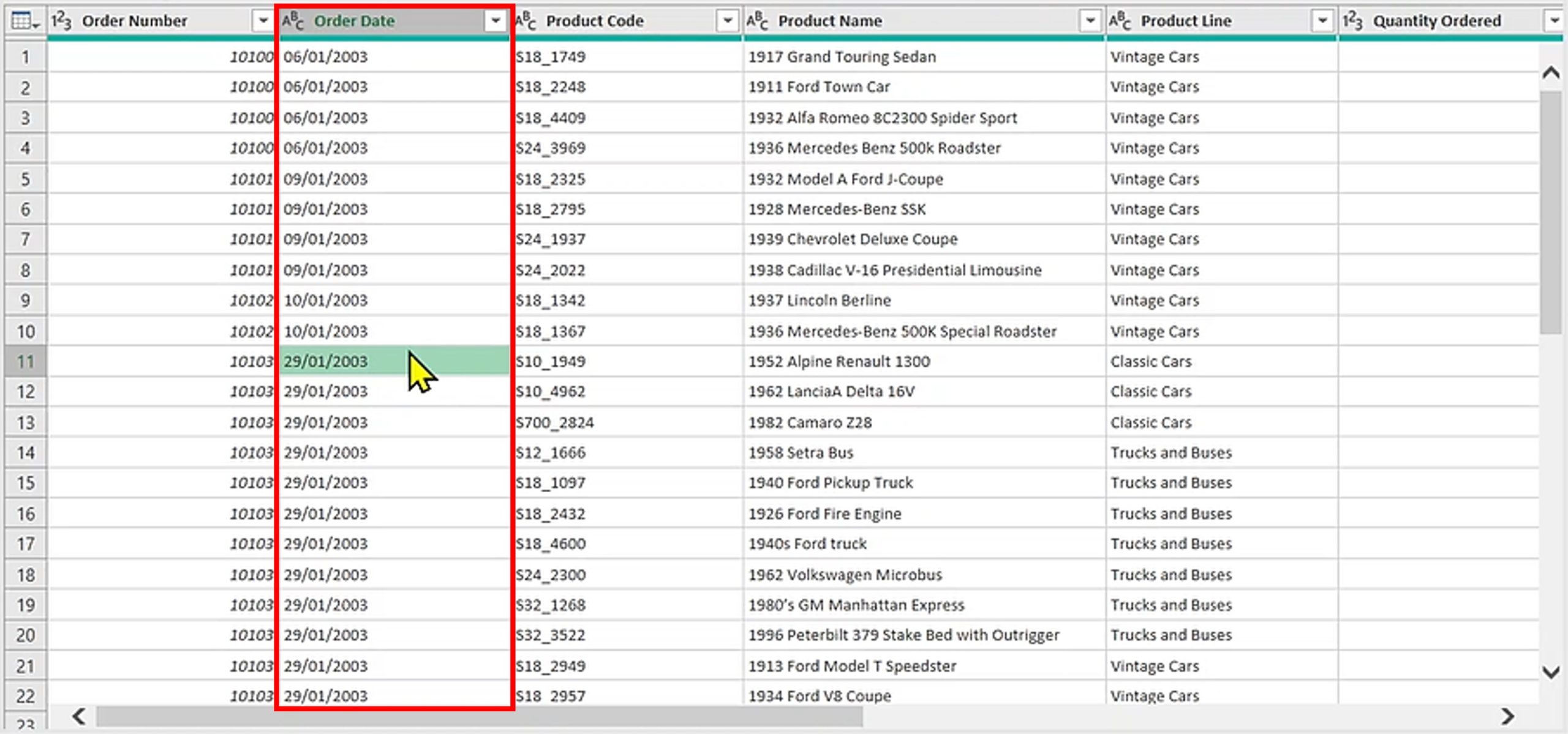 - Pada tampilan hasil import, kolom Quantity Ordered masih memiliki format yang tidak sesuai. Kita bisa membuka kembali Power Query nya dengan cara double click di bagian sebelah kanan.