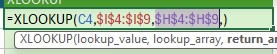 XLOOKUP(lookup_value, lookup_array, return_array, [if_not_found], [match_mode], [search_mode])